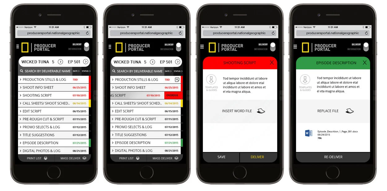 I worked closely with the client onsite at Washington D.C in April 2015 as well as key stakeholders in Los Angeles over the next two years. I led the digital product design of the mobile tool for producers to deliver time-sensitive material from remote locations around the globe.